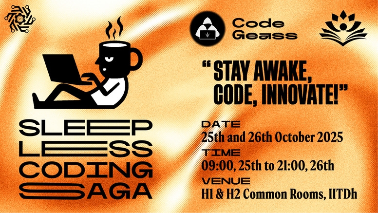 Over 36 intense hours of creativity, logic, and caffeine, teams will collaborate to bring their boldest ideas to life. Whether you’re a problem solver, a tinkerer, or a dreamer, Code Geass: The Sleepless Coding Saga invites you to push the boundaries of what’s possible - one line of code at a time.